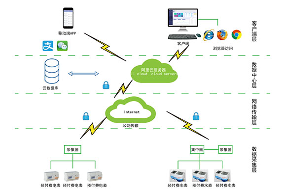對(duì)于分布不同省、地市或同地市不同區(qū)域的連鎖商業(yè)、集團(tuán)、百貨、門(mén)店、物業(yè)、院校等業(yè)務(wù)分散,要求集中管理、線上支付,低額提醒、欠費(fèi)告警。但常規(guī)的本地插卡付費(fèi)、本地預(yù)付費(fèi)并不能完全滿(mǎn)足客戶(hù)管理需求,預(yù)付費(fèi)云平臺(tái)應(yīng)運(yùn)而生。AcrelCloud-3200水電預(yù)付費(fèi)云平臺(tái)無(wú)縫集成商業(yè)、物業(yè)公司、集團(tuán)企業(yè)、院校等分散布置的安科瑞DDSY/ADF系列電子式預(yù)付費(fèi)電能表、閥控智能水表等,提供微信、支付寶、銀聯(lián)等可選的在線支付方式,大大方便了用戶(hù)充值、圈存,提供預(yù)警和充值、退費(fèi)、電能消耗等記錄查詢(xún),方便用戶(hù)和管理方的數(shù)據(jù)統(tǒng)計(jì)和財(cái)務(wù)分析,提供先交費(fèi)后使用的管控機(jī)制,大大降低了管理部門(mén)的收費(fèi)成本。